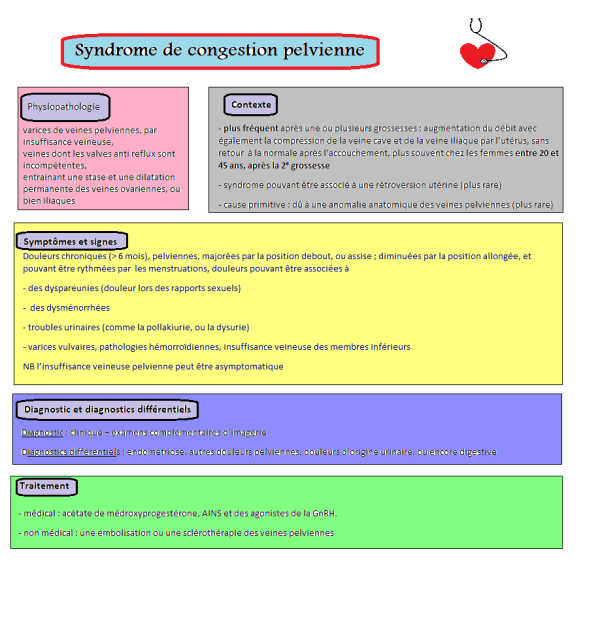 Sources : https://www.msdmanuals.com/fr/professional/gyn%C3%A9cologie-et-obst%C3%A9trique/troubles-menstruels/syndrome-de-congestion-pelvienne# http://www.arteres-veines.com/congestion-pelvienne