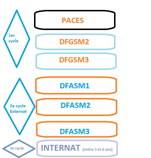 Les études de médecine sont composées de 3 cycles : - 1er cycle : * PACES : première année commune aux études de santé, un concours commun à la filière médecine, dentaire, pharmacie, sage- femme, et kiné. Avec la réforme, chaque université décide du nombre de personnes prises à l'issue de la première année. Il... Lire la Suite →