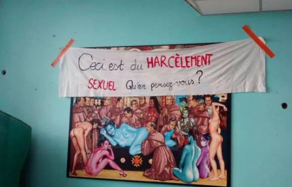 Fresque misogyne et sexiste retirée de l'internat du CHU de Purpan à Toulouse. Ces derniers temps, on a beaucoup entendu parler de l’ « humour » carabin, de la « culture » carabine. Pseudo « humour » carabin : Ambiance de salle de garde, fresques sexistes, chants sexistes, graffitis sexistes sur les murs des chambres de garde, tonus qui dérapent, bizutage (qui je... Lire la Suite →